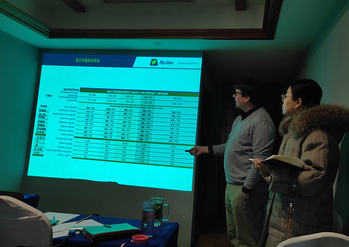 交流會(huì)上、Vitor Arantes先生對(duì)“海蘭蛋雞各階段營養(yǎng)需求”及“如何提高飼料轉(zhuǎn)化率”等方面進(jìn)行了講解匯報(bào),同時(shí),就飼養(yǎng)管理及技術(shù)問題進(jìn)行了深入的探討交流,雙方皆獲益良多。