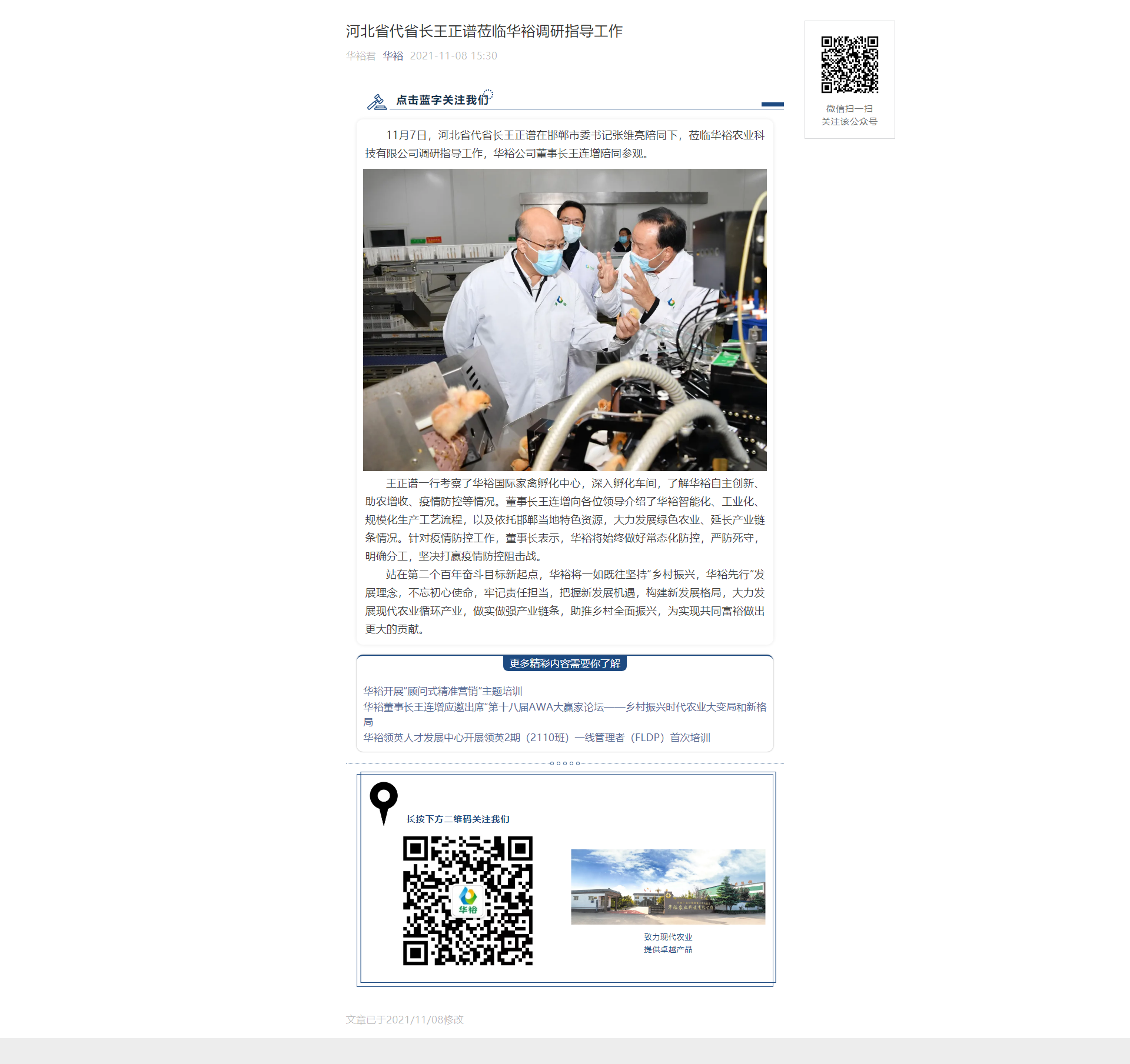 河北省代省長王正譜蒞臨華裕調研指導工作