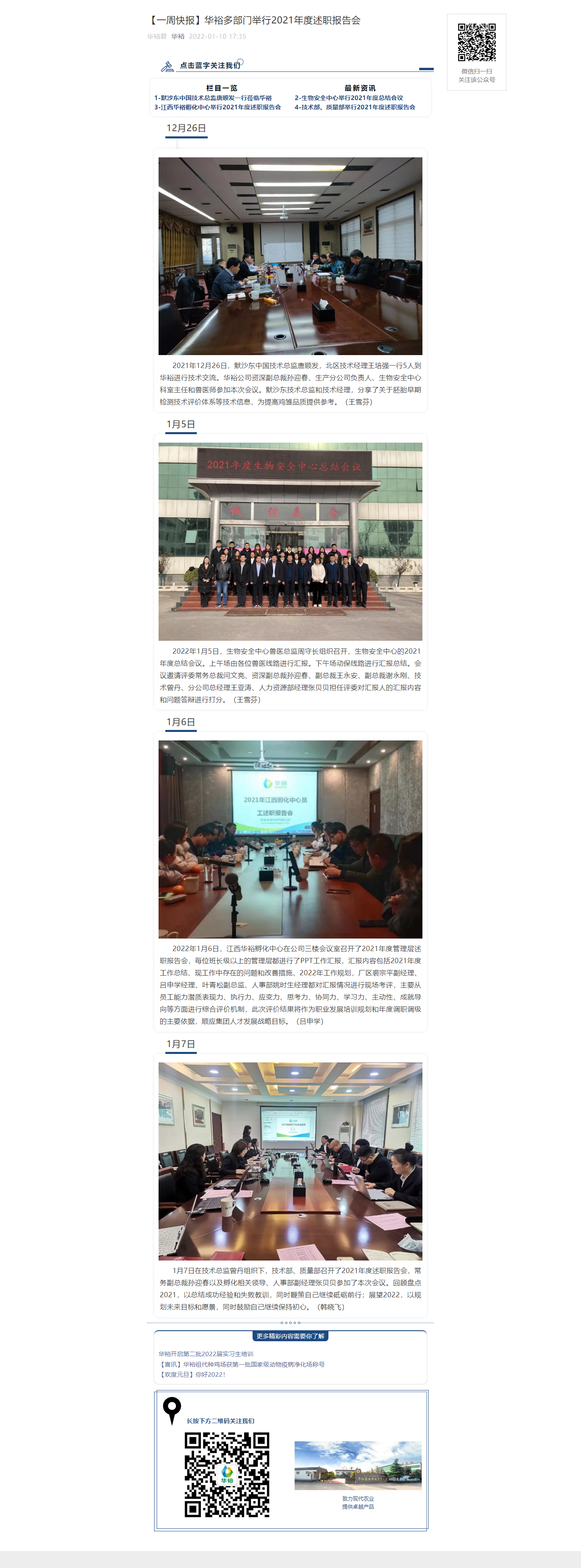 【一周快報】華裕多部門舉行2021年度述職報告會