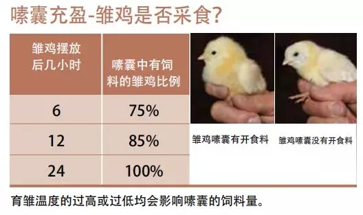 優(yōu)秀的雛雞群在良好的飼養(yǎng)管理?xiàng)l件下放雞后12小時(shí)都能達(dá)到85%嗉囊充盈率24小時(shí)可以達(dá)到100%的狀態(tài)。個(gè)別弱小未采食的往往是拖群體后腿可能要被淘汰的對象。根據(jù)生產(chǎn)現(xiàn)場的觀察,影響一日齡雛雞嗉囊充盈率的因素主要有以下幾點(diǎn),提醒廣大養(yǎng)殖朋友重視與關(guān)注。