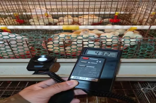 D雞舍內(nèi)光照一定要亮,每籠雞都要滿足最小的光照強(qiáng)度,20lx以上更好,起碼滿足該品種對光照亮度的要求。剛出殼的雛雞視力是很弱的,用強(qiáng)光刺激適應(yīng)環(huán)境。