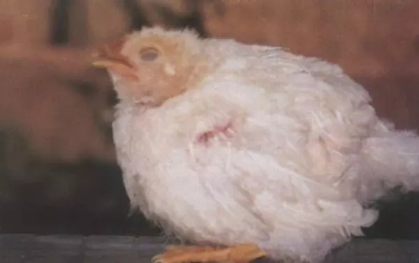 它主要侵害2-5周齡的雞,2周齡以內(nèi)的雛雞也可能病。病雞表現(xiàn)明顯的精神沉郁,閉眼嗜睡,食欲減退,腹瀉以及羽毛粗亂無(wú)光易折斷。病雞生長(zhǎng)發(fā)育受阻,排黑色、灰色稀便,有時(shí)混有血液。與小腸球蟲病并發(fā)時(shí),糞便稍稀呈柿黃色或間有肉樣糞便。病程稍長(zhǎng),有的出現(xiàn)神經(jīng)癥狀。病雞翅腿麻痹、顫動(dòng)、站立不起、癱瘓、雙翅拍地,觸摸時(shí)發(fā)出尖叫聲。